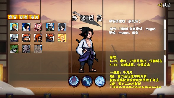 1、以复古像素风格重新诠释火影中的经典场景和人物,支持在线或离线街机格斗模式。