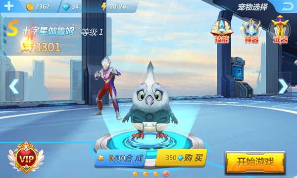 另一名S级宠物是十字星伽鲁姆,虽然同样都是S级但是十字星伽鲁姆的属性比疾风巴莱鲁还要更加强大,十字星伽鲁姆的获取方式是需要30个碎片进行合成,或者需要350钻石进行购买,可以说获取难度比S级武器还要困难!