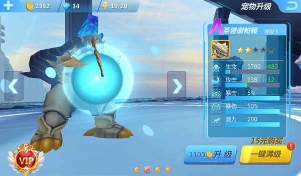 A级宠物圣兽谢帕顿,这个宠物也是非常强力的,并且获取难度也并不高,小伙伴们只需要连续登陆七天就可以获得这个宠物,这个宠物的技能是十分实用的恢复系技能,玩家拥有这个技能后就可以获得的更强的续航能力!