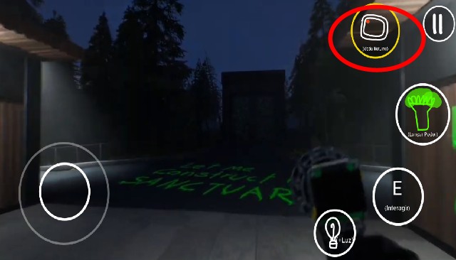 2、点击play进入游戏,在主界面,左侧是虚拟键控制前后左右移动,右侧则E表示射击开门,靠左边的是换灯具,照亮,最上面的是抓取碎片