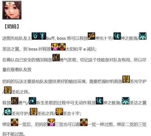 作为团队中不可或缺的重要角色,联盟奶妈的技能加点是玩家们在游戏中必须掌握的一项技巧。本文将通过详细分析各种联盟奶妈角色的技能加点策略,帮助玩家们更好地理解和应用这一方面的知识,从而打造一个强大的团队辅助。